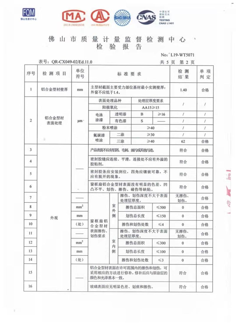 窗的檢測報告